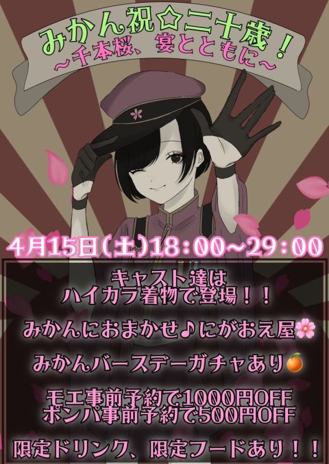✨本日のキュート✨ 18:00〜みかん 19:00〜えめ 20:00〜まよい ⭐️イベント情報⭐️ 4/15 みかん祝二十歳㊗️ お得なシャンパン事前予約受付中🍾 営業時間 18:00〜24:00 https://t.co/ATFofVNkr0
