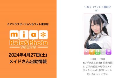 ご予約で満席となっておりますが、19:00までに @miamaid13a DMまでご相談くだされば出勤時間延長可能です!