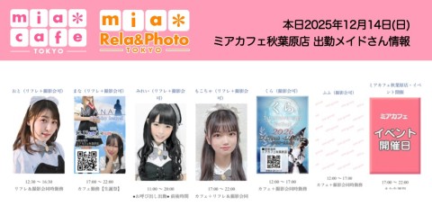 👑本日12月14日(日)ミアカフェ秋葉原店