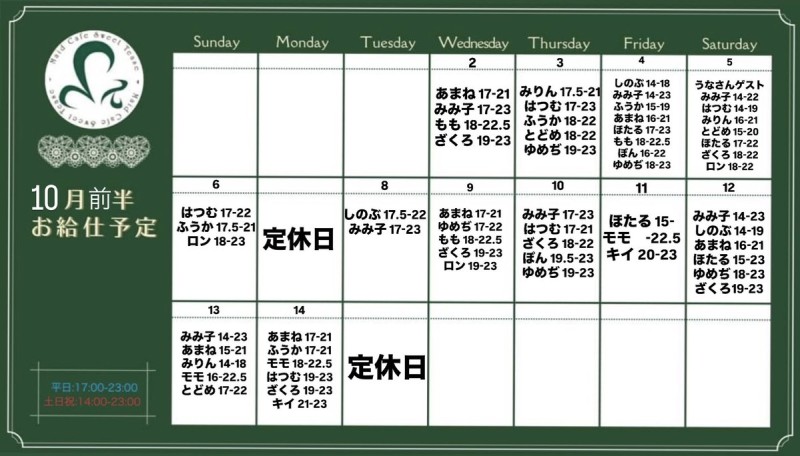 | 営業時間 | 平日:15時〜22時(LO20時30分) 金土日祝:12時〜23時30分(LO23時) 定休日:第1・3水曜日 | ||||||||||||||