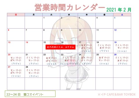 | 営業時間 | 月〜金:バータイム 18時〜23時 土日祝:バータイム 18時〜23時 ナイトタイム 23時〜翌5時 ※新型コロナウイルスの影響により営業時間を変更する場合がございます。 | ||||||||||||||