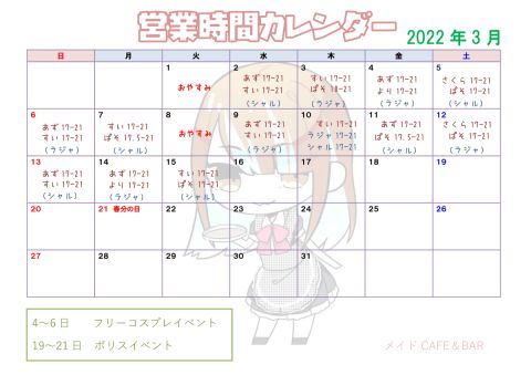 ★3月21日迄の出勤カレンダー★ 3月1日~21日間の出勤カレンダーです! 19~21日はTOYBOX初のポリスイベント開催です(*´ω`) ぜひチェックしてご来店お待ちしております♪ https://t.co/dk3m7SnZpc