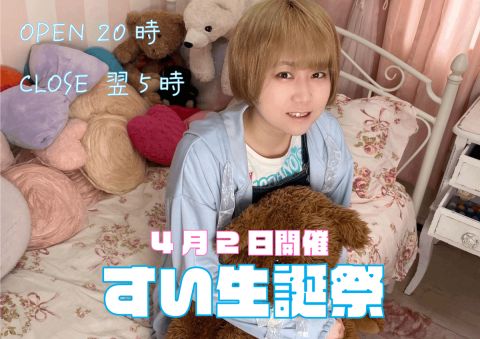 ☆すい生誕祭☆ 4月2日はすいちゃん初めての生誕祭! 開催時間は20時~翌5時となりました♪ 久々のナイト営業で生誕祭です! いろんな限定メニューやオリジナルグッズをご用意しております! ぜひ一緒にお祝いしましょう(*´ω`) https://t.co/keayAgOhmg