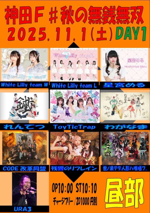 11/1(土)神田F#秋の無銭無双 DAY1 📍神田F# ⏰OPEN10:00 / START10:10 🎤13:00-13:30 📸15:00-16:00 🎫0/0(2D1000別) 🔗予約不要 https://t.co/zfzgreXI35