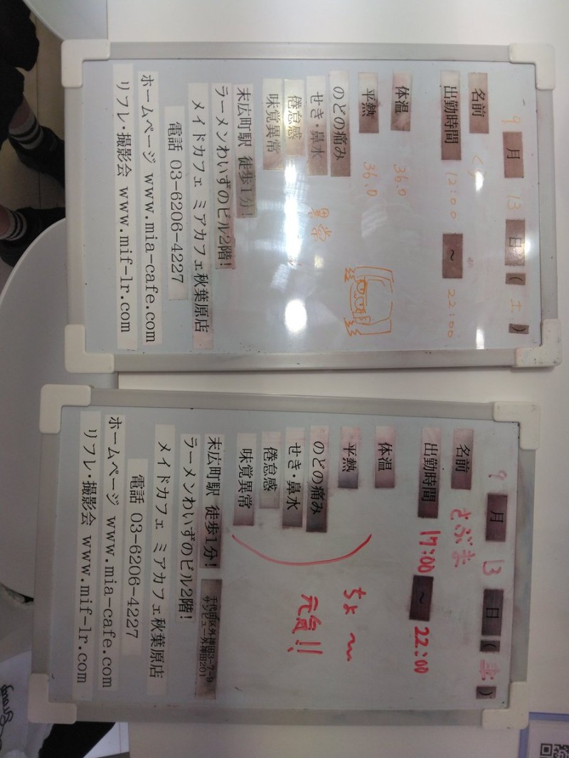 本日8月14日(朚)ミアカフェ秋葉原店は12:00〜22:00営業予定でしたが、メむドさんの䜓調䞍良のため【17:00でクロヌズ】させおいただきたす。 倜のご垰宅を予定されおいた方にはご迷惑をおかけしたす。 ミアカフェ秋葉原店 https://t.co/XE67kfWsFK