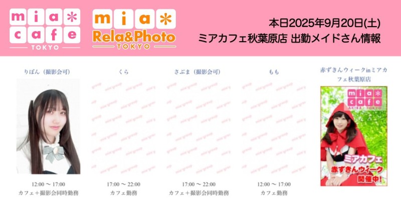 👑本日9月20日(土)のミアカフェ秋葉原店