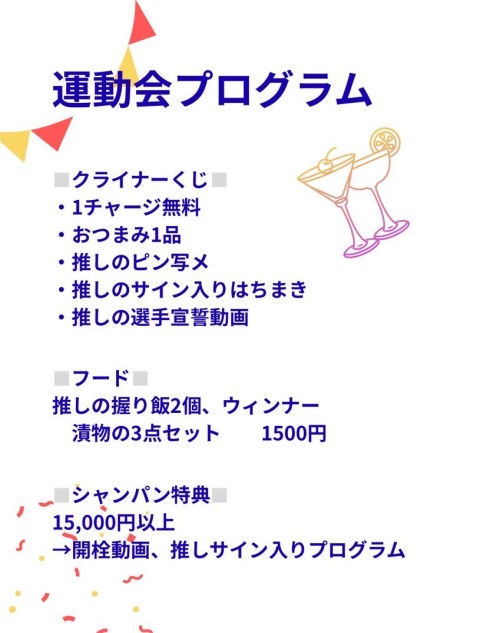 本日、秋の運動会プチイベント開催! 推しの手作りおにぎりやクライナーくじやシャンパン特典も🍾✨ 運動会風の服装でキャスト達がお待ちしております! https://t.co/wigTyL22k1