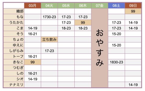 ▶︎3(月)の気絶は祝日につき14-21営業