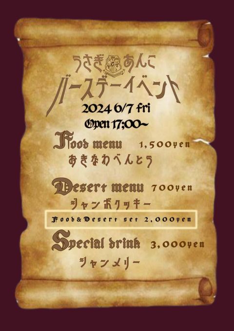 | 営業時間 | 18:00-24:00(不定休) | ||||||||||||||