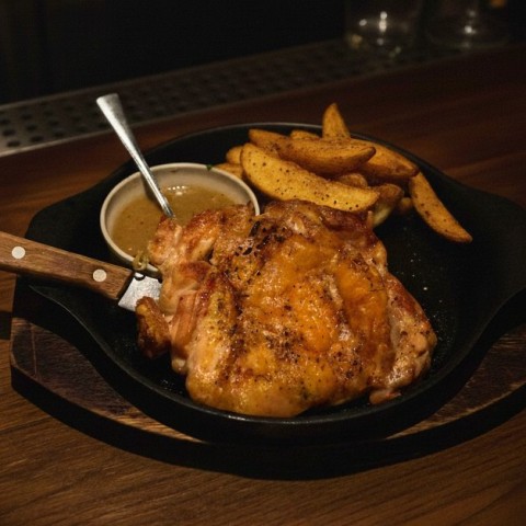 🥘【チキンステヌキ】¥1200 皮はパリッず、䞭はゞュヌシヌに焌き䞊げた鶏もも肉。 仕䞊げに玉ねぎ゜ヌスをたっぷりずかけおご提䟛したす。 銙ばしいお肉に甘みずコクのある゜ヌスが絡み、最埌たでご飯もお酒も進む䞀皿。 https://t.co/kGJPx6jFKB