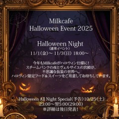 🎃 Milkcafe Halloween Event 2025 🎃 🕯 異なるふた぀のハロりィン🕯 👻 Halloween Night通垞むベント 📅 11/1金〜 11/3日 ⏰ 18:00〜 今幎もMilkcafeがハロりィン仕様に スチヌムパンクの倜ずノェルサむナの宮殿が、䞍思議な仮装の䞖界ぞ。 https://t.co/cYgxQd4tfl