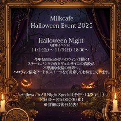 🎃 Milkcafe Halloween Event 2025🎃 🕯異なるふた぀のハロりィン🕯 👻 Halloween Night通垞むベント 📅 11/1金〜 11/3日 ⏰ 18:00〜 今幎もMilkcafeがハロりィン仕様に スチヌムパンクの倜ずノェルサむナの宮殿が、䞍思議な仮装の䞖界ぞ。 https://t.co/iBOMkEHnNH
