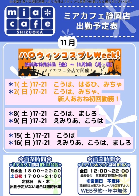🎃11月1日(土) 17-21 こうは,はるひ,みちゃ
