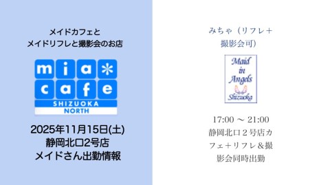 👑本日11月15日(土)のミアカフェ静岡北口2号店