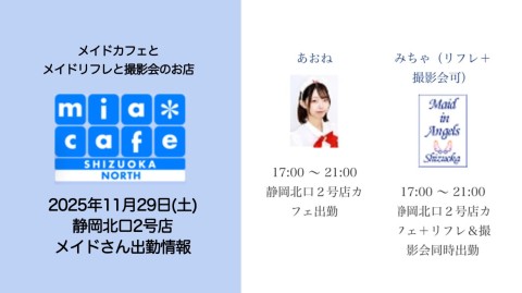 👑本日11月29日(土)のミアカフェ静岡北口2号店